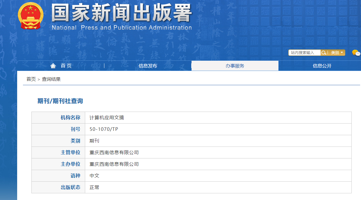 主办单位:重庆西南信息有限公司