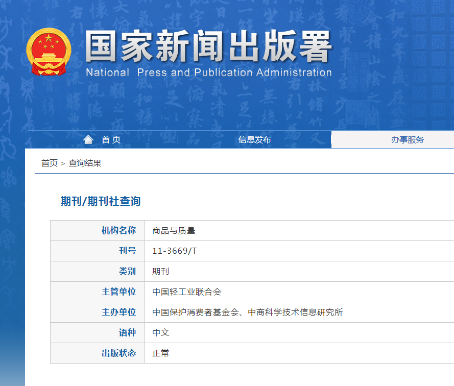 《商品与质量》杂志是经国家新闻出版署批准的正式出版物,1994年创刊,《商品与质量》是由中国轻工业联合会主管;中商科技信息研究所主办的国家级综合类期刊。《商品与质量》国内统一刊号:CN11-3669/T,国际刊号:ISSN1006—656X。