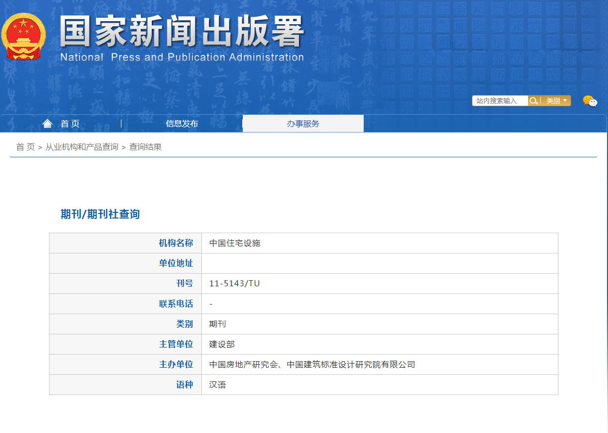 《中国住宅设施》杂志是由中华人民共和国住房和城乡建设部主管,《中国住宅设施》杂志是中国房地产研究会和中国建筑标准设计研究院主办,《中国住宅设施》杂志创刊于2003年,具有很强的权威性、指导性、可读性,面向国内外公开发行的国家级建设综合信息类优秀期刊。