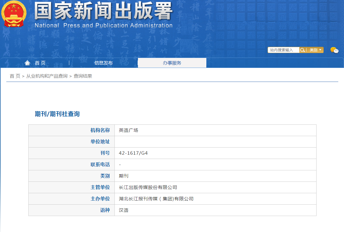 《英语广场》是全国重点知名品牌刊物,中国期刊方阵入选刊物,湖北省优秀期刊。该杂志创办于1999年,其系列刊物及图书音像制品在全国发行数千万册。该刊现为旬刊,《英语广场》分为《英语广场·青少版》、《英语广场·美文版》、《英语广场·学术研究》,由湖北长江出版集团主管、湖北大家报刊社主办,全国公开发行。上旬刊和中旬刊为发行刊,下旬刊为学术刊。