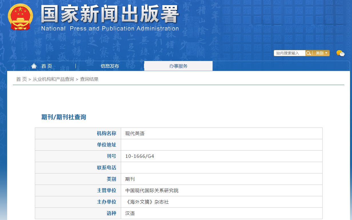《现代英语》由中国现代国际关系研究院主管,《海外文摘》杂志社主办,国内刊号:CN10-1666/G4,国际刊号:ISSN2096-7985。《现代英语》坚持正确的的舆论导向和办刊方向,研究国内外英语教学经验,探索英语学科发展方向,为国内外英语研究和教学科研成果提供交流平台,促进我国英语学科建设和发展。