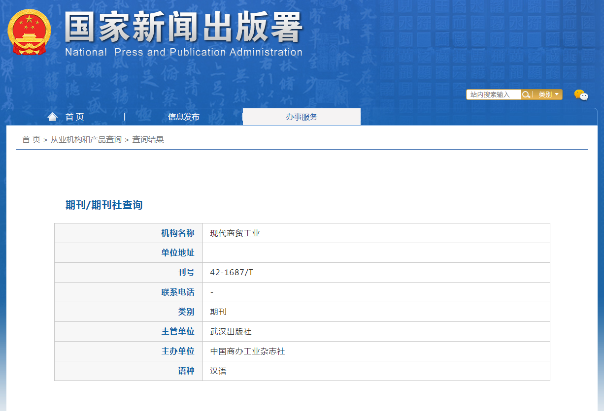 《现代商贸工业》杂志是中国期刊网、龙源国际期刊网、中国数字化期刊群(万方数据)。《现代商贸工业》杂志中文科技期刊数据库、中国学术期刊(光盘版)全文收录期刊。《现代商贸工业》杂志中国学术期刊综合评价数据库来源期刊,中国核心期刊(遴选)数据库收录期刊。