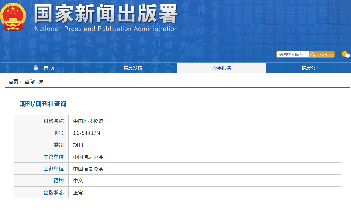 期刊刊名:《中国科技投资》杂志