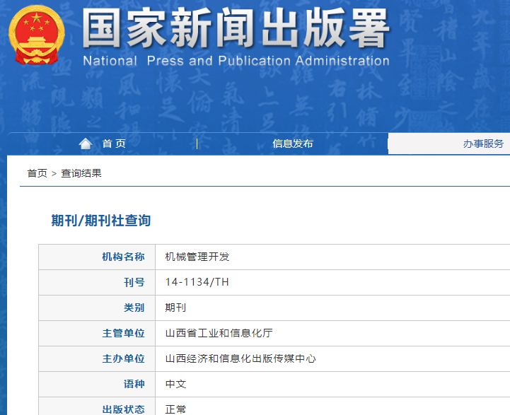 期刊刊名:《机械管理开发》杂志