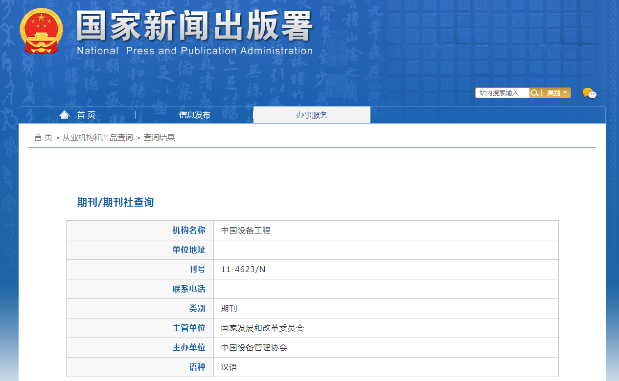 期刊刊名:《中国设备工程》杂志