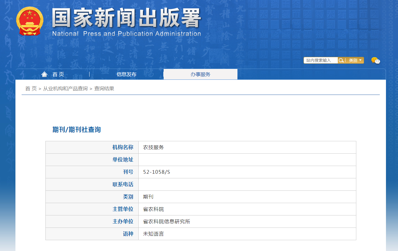期刊刊名:《农技服务》杂志