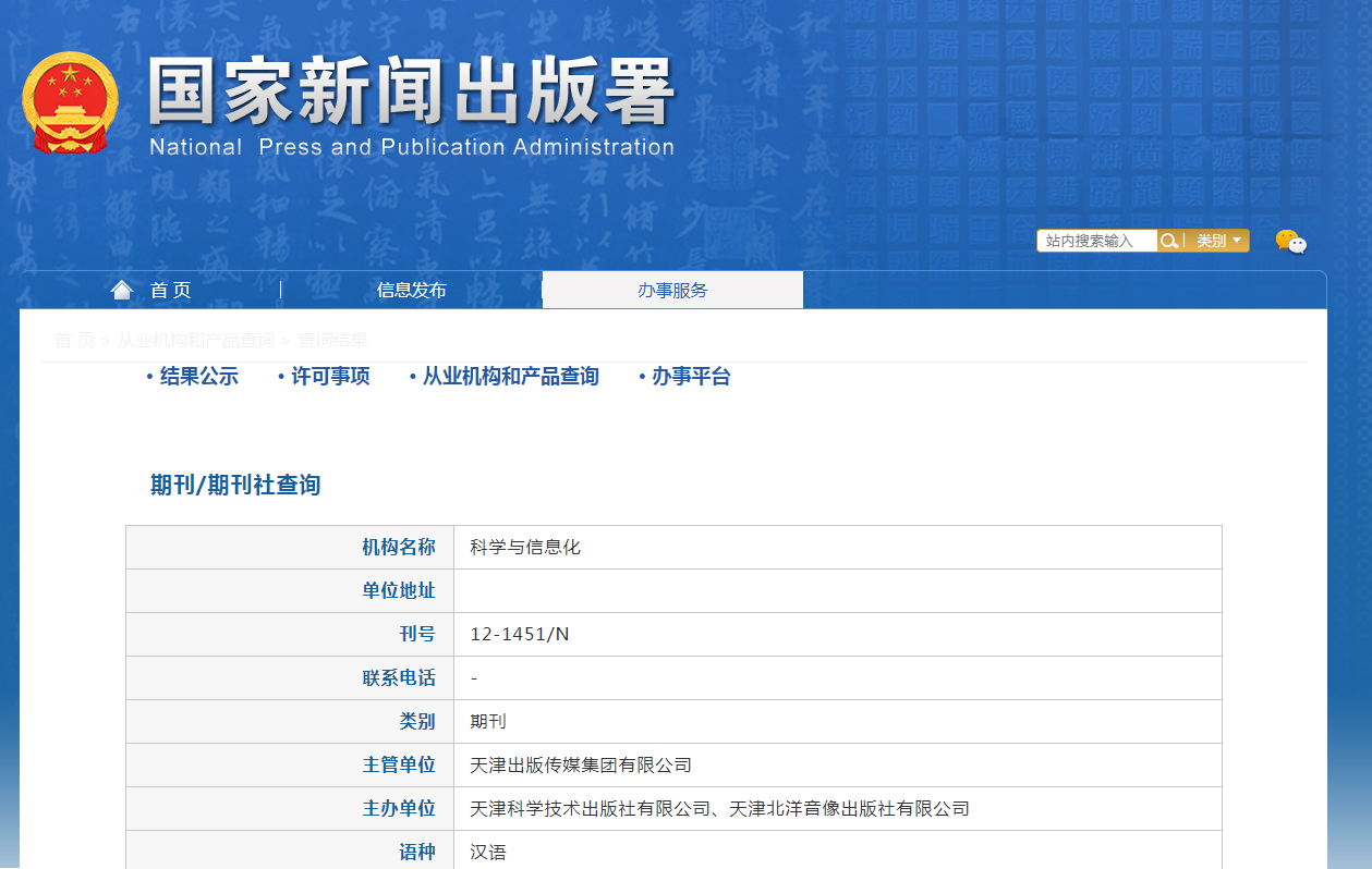 《科学与信息化》杂志是经国家新闻出版广电总局批准,天津出版传媒集团有限公司主管,天津科学技术出版社有限公司与天津北洋音像出版社有限公司主办的国内公开发行的科技类综合性杂志。《科学与信息化》杂志坚持正确的舆论导向,介绍信息化技术及其应用知识,传播科学理念,倡导创新精神,普及提高大众信息化知识水平。《科学与信息化》现面向广大科研、文教工作者,工程、农业技术人员等征集与信息化相关的优秀学术论文。