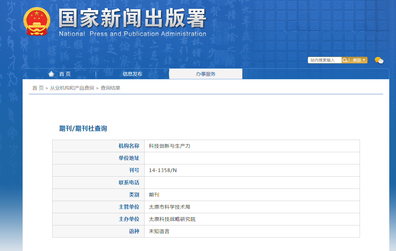 期刊刊名:《科技创新与生产力》杂志