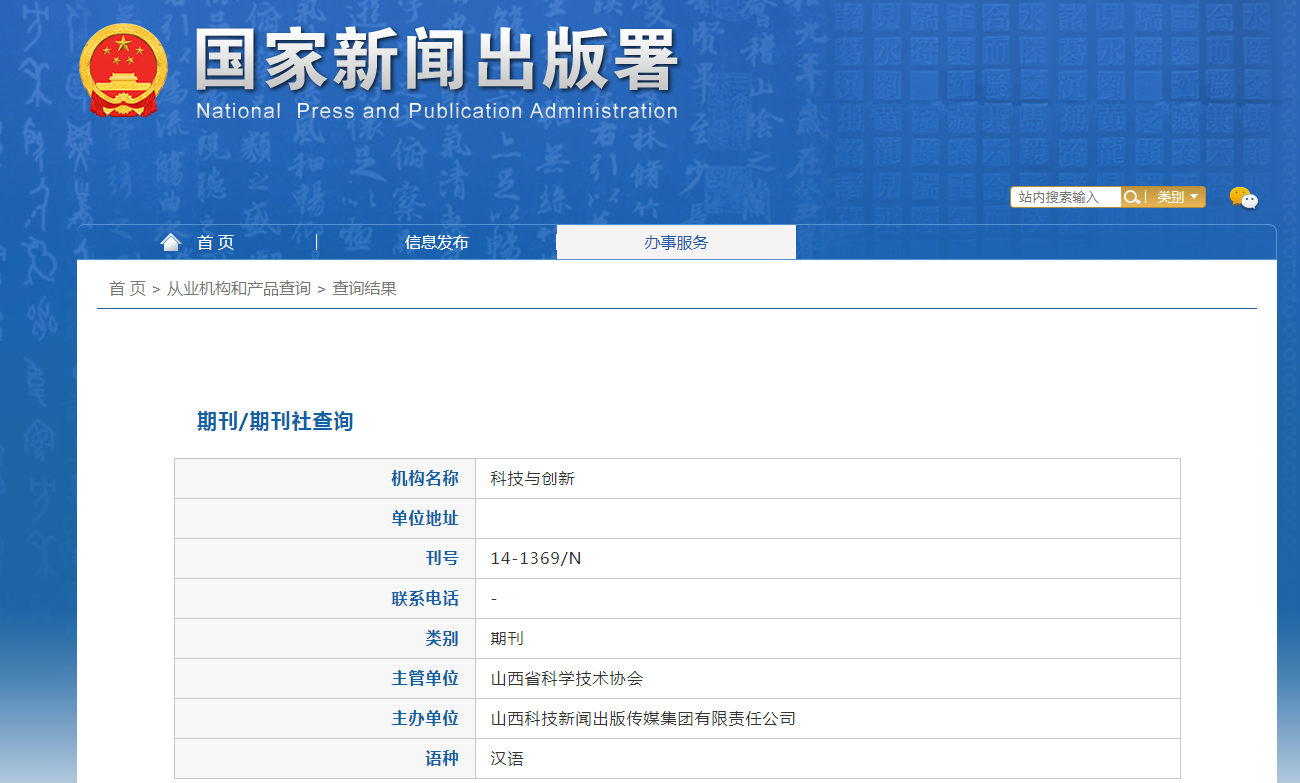 《科技与创新》杂志为国家新闻出版署批准,面向国内外公开发行的“全国综合性科技期刊”,国内统一刊号CN14-1369/N,国际标准刊号ISSN 2095-6835。《科技与创新》杂志以“关注科技前沿、交流创新成果、加快科技推广、营造创新氛围”为办刊宗旨,努力为科技工作者搭建科技成果交流的平台。本刊将坚持高起点、高标准,突出指导性、实用性,刊登我国当前科技、经济、管理、工程、交通等各领域的优秀学术论文。 在《科技与创新》杂志上公开发表的论文,均可通过国内各大数据库(中国知网、万方、维普、龙源)检索、查询,是作者科研、晋级等方面的权威依据。
