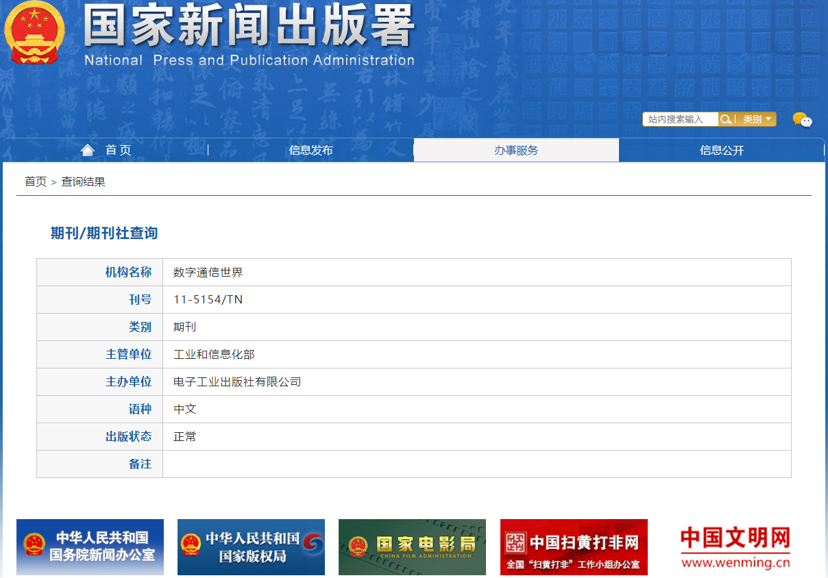 期刊刊名:《数字通信世界》杂志