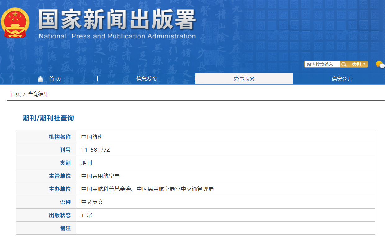 期刊刊名:《中国航班》杂志