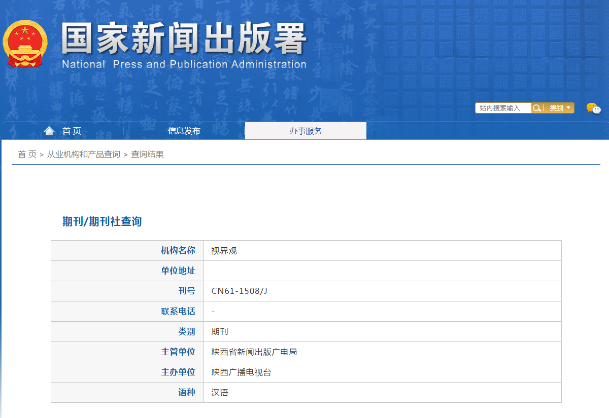 期刊刊名:《视界观》杂志