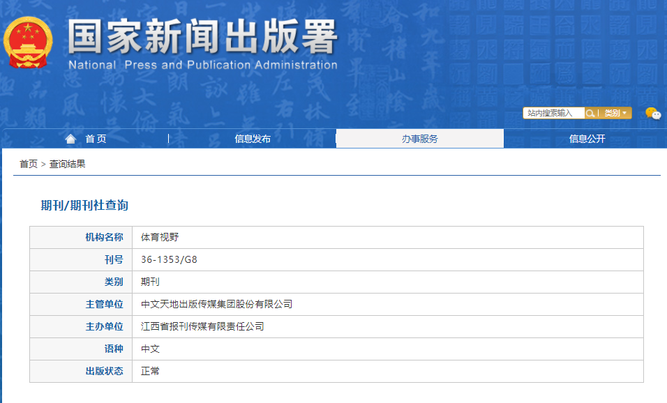 《体育视野》杂志是国家新闻出版总署总局批准,由中文天地出版传媒股份公司主管、江西省报刊传媒有限责任公司主办的省级体育类,是一本以报道国际足球风云为主,兼顾国内足坛的文化综合类期刊,读者象主要为15-30岁的青少年足球爱好者。国内统一刊号:CN 36-1353/G8,国际标准刊号:ISSN 2096-8817。主要栏目:明星阵线、竞技天下、欧洲杯专栏、足球制造、球迷乐园笔等。《体育视野》杂志在中国体育期刊领域独树一帜,靠良好的创意策划和极强的可读性赢得了读者的喜爱,自1995年至今,连续七年稳居全国足球杂志发行量排行榜之首,是中国最畅销、传阅率最高的的足球杂志,也是全国唯一一份连续两届获得“国百种重点社科期刊”号的足球杂志,是体育期刊领域里的品牌期刊,深受青少年读者的喜爱,现有发行量每月30万册左右。自创以来,被公誉为具有业内影响力的杂志之一。足球俱乐部并获中国优秀期刊奖,现中国期刊网数据库全文收录期刊。